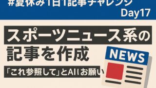夏休み1日1記事チャレンジ、17日目!今日はスポーツニュースを記事に今日のテーマはスポーツ系の記事。トレンドニュースで見つけた話題の試合結果や選手コメントなど、ニュース本文をそのままコピーして、AIチャットボットに「これ参照して記事にして」...
